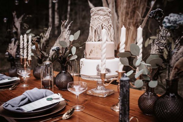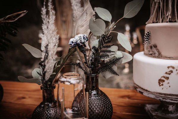 Dieses Set, bestehend aus 2 unterschiedlich großen Glasvasen in schwarz, verleiht Eurer Hochzeit einen mystischen Flair.